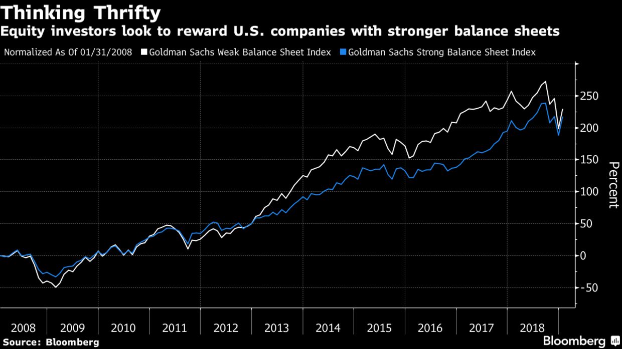 U.S. companies with weak balance sheets have underperformed those with strong financials in recent months, a reversal from the post-crisis trend.