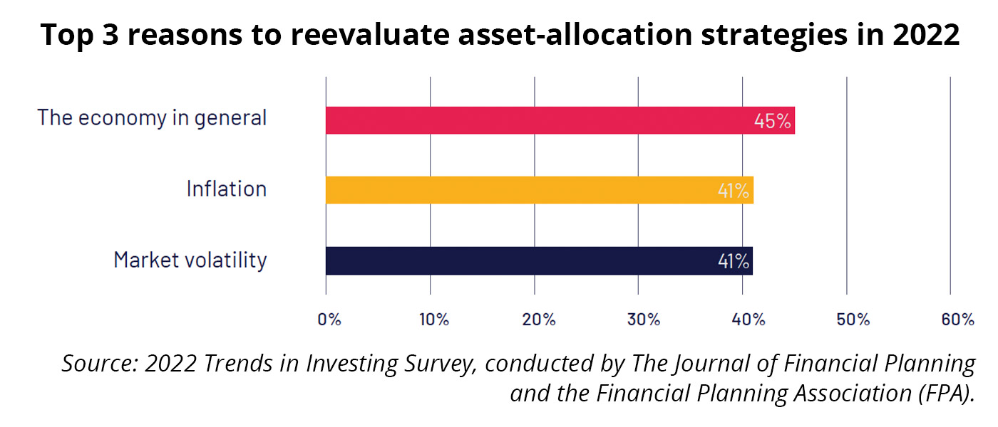 Nonetheless, 69% of advisers reported that they either used a blend of active and passive strategies or exclusively active strategies. Most also report that they remain vigilant when it comes to their clients’ asset-allocation strategies, with some specific concerns rising to the top this year.