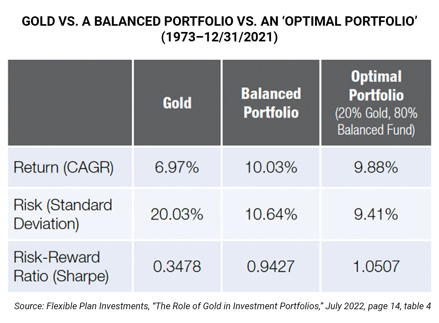 The FPI white paper referred to is a comprehensive analysis of gold’s performance, looking at data over a lengthy period (1973–2021).