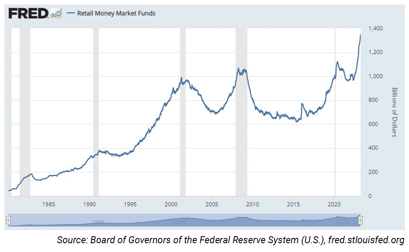 The rising yields have not gone unnoticed by investors. As Treasury yields have soared, so have the amount of assets deposited in money-market funds. They have quickly reached the highest level in history—nearly $1.4 trillion!