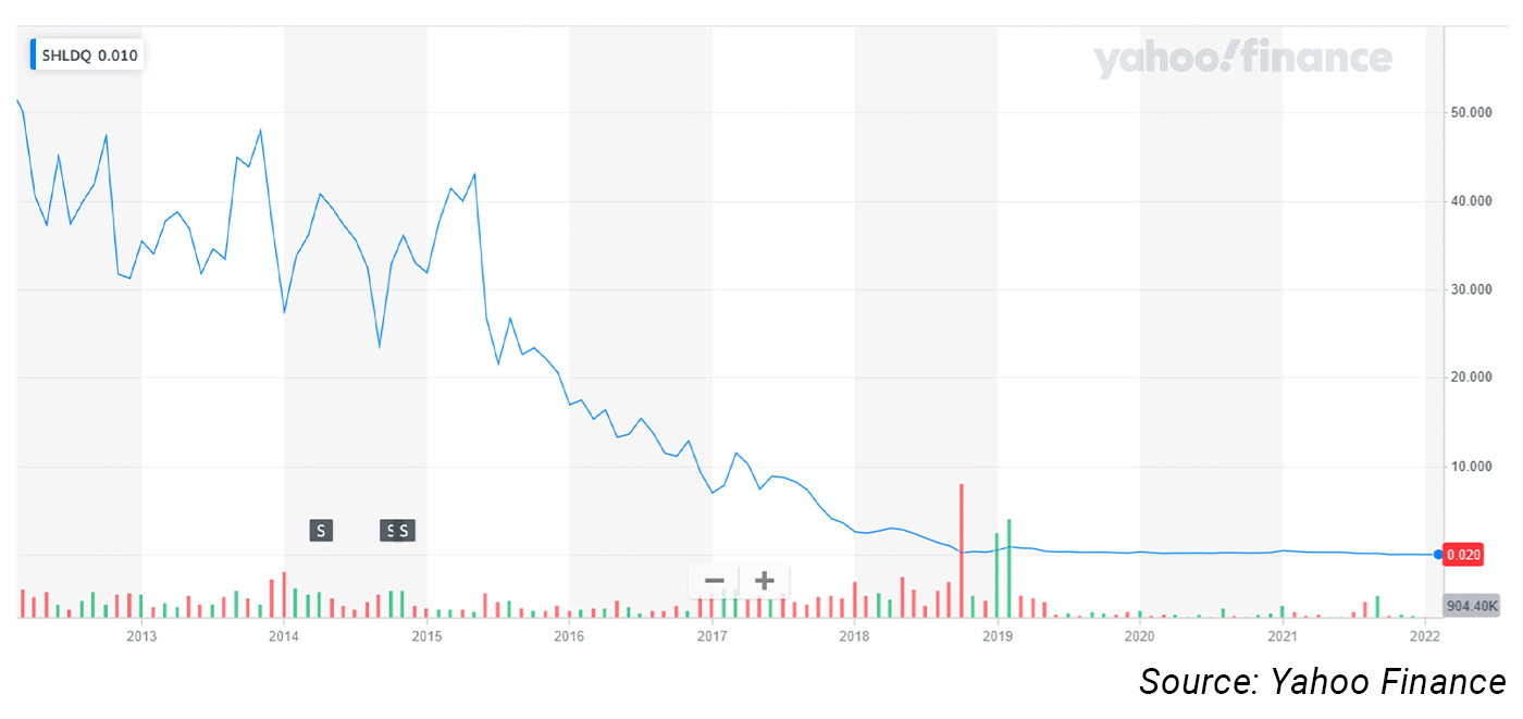 You create a portfolio because owning just a single asset makes you susceptible to a very high level of risk. For example, for most of my life, Sears was a brand I knew and trusted. When I began investing 50 years ago, it was the nation’s biggest retailer and a centerpiece in most portfolios. Yet, this is how Sears performed from 2012 to early 2022: