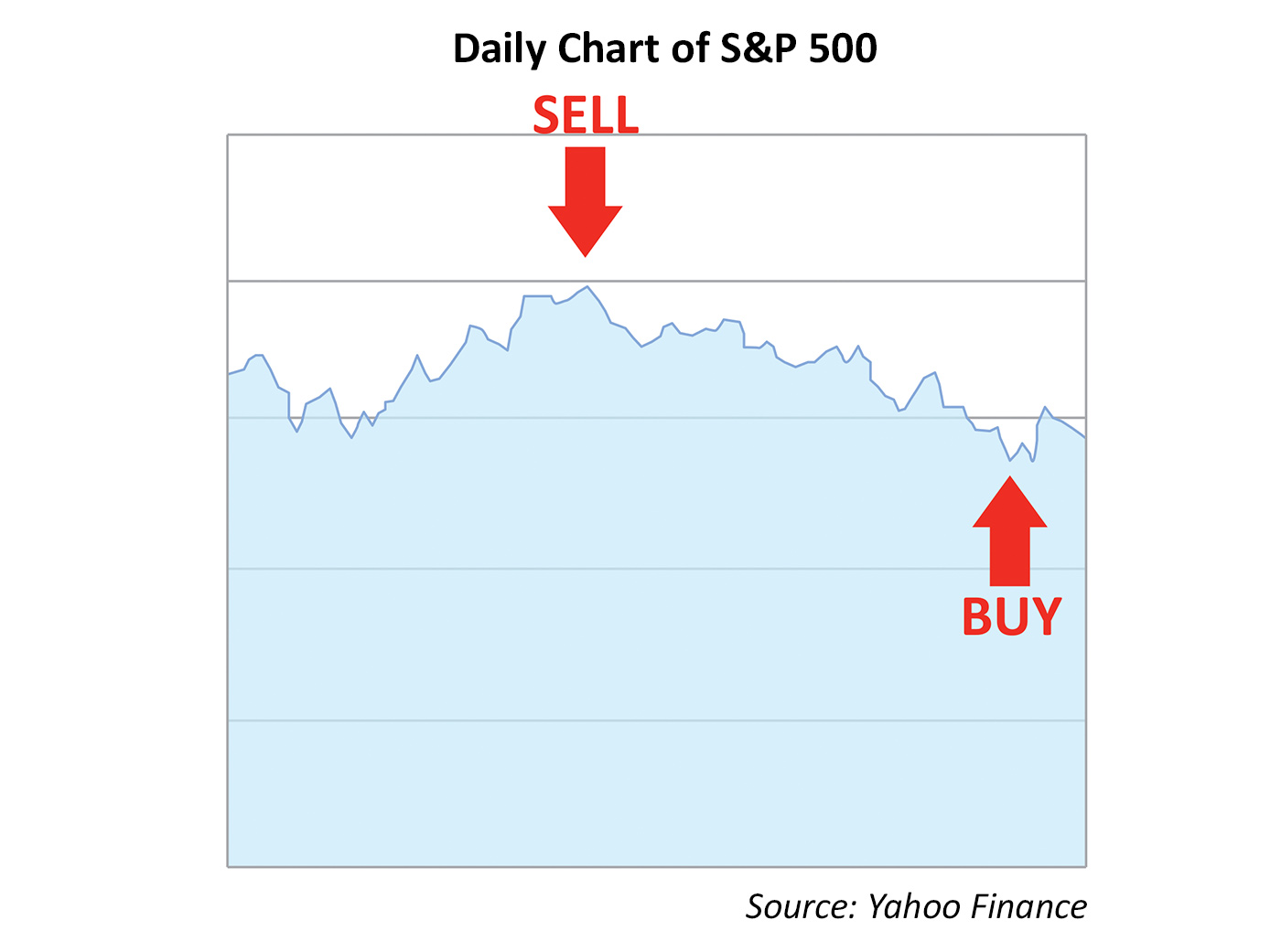 But the highs and lows are also obvious in hindsight when you zoom in at the one-year, quarterly, monthly, weekly, or even daily view. At each level, it is easy to imagine getting out at the top and buying in at a low during the ever-shorter life of the chart.