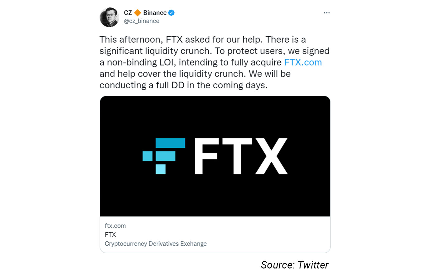 On November 8, Changpeng Zhao, CEO of the largest cryptocurrency exchange, Binance, posted on Twitter that FTX had asked for help and a letter of intent had been signed to acquire the firm after Bankman-Fried tweeted on November 7 that FTX’s assets were “fine.”