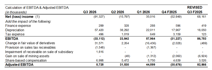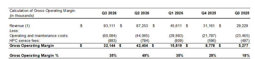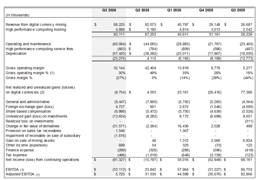 Gross operating margin was $32.1 million or 35%3, up from 18% in fiscal Q3 FY2025. See the calculation of direct costs and mining margin included below in this press release.
