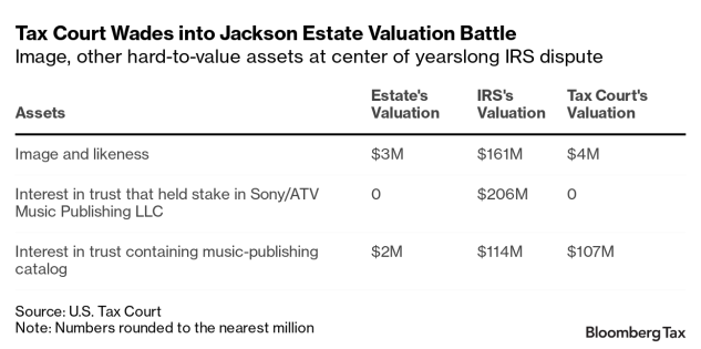 A ruling that Michael Jackson’s image and likeness at the time of his death were worth about $157 million less than the IRS estimated warns the agency not to look too far down the road when assessing the value of a celebrity’s estate.