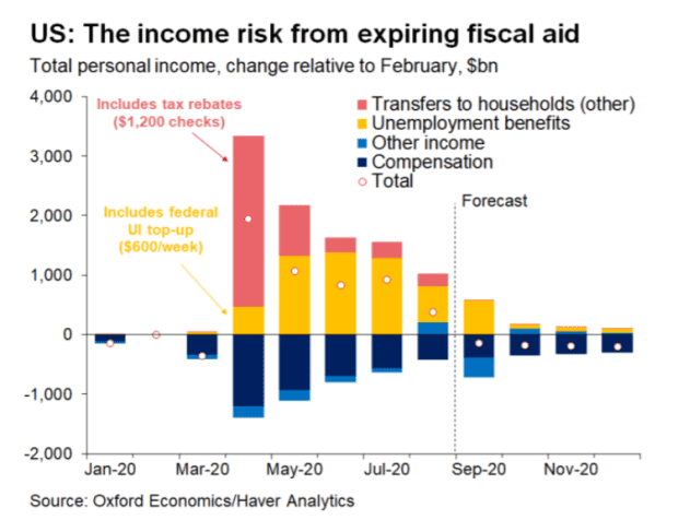 Gregory Daco, chief U.S. economist at Oxford Economics, said the move could be a watershed moment for the world’s largest economy. Yes, consumer spending held up after the expiration of the $600 weekly federal unemployment benefits at the end of July. But that is because of the savings that had been built up during the spring and summer, thanks in part to those benefits, as well as the inability to go out to shops and spend.